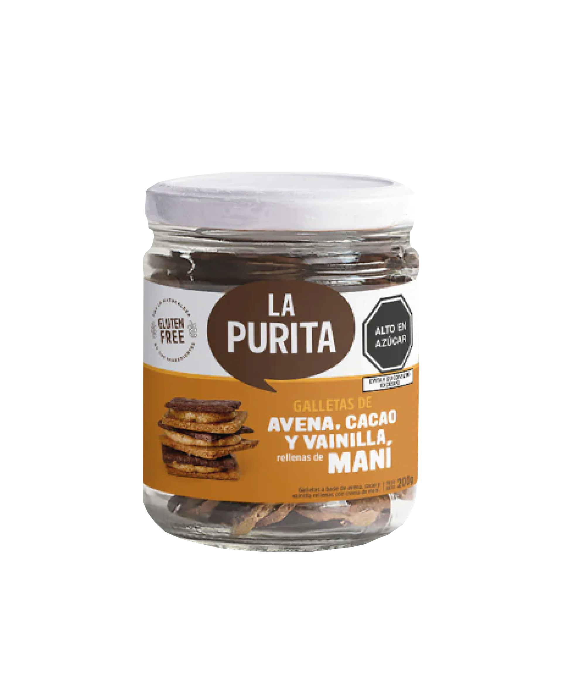 Galletas Avena vainilla cacao Rellenas de Maní Frasco x200gr-La Purita